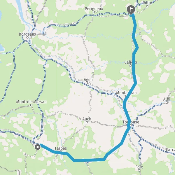 Prendre à droite et rejoindre A62. Continuer sur 33 kilomètres