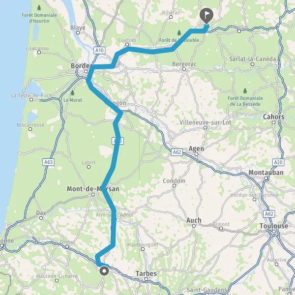 Prendre à droite et rejoindre A65. Continuer sur 150 kilomètres