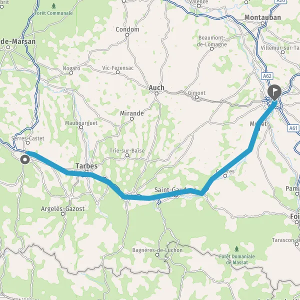 Prendre à droite et rejoindre A64 E80. Continuer sur 183 kilomètres