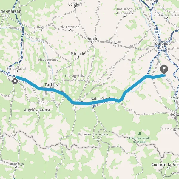 Prendre à droite et rejoindre A64 E80. Continuer sur 154 kilomètres