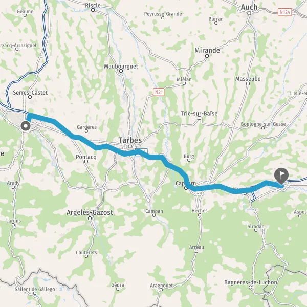 Au rond-point, prendre la 3ème sortie sur D817 (Route de Tarbes) et continuer sur 5,9 kilomètres