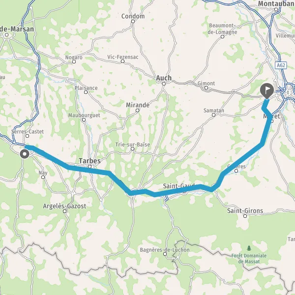 Prendre à droite et rejoindre A64 E80. Continuer sur 169 kilomètres