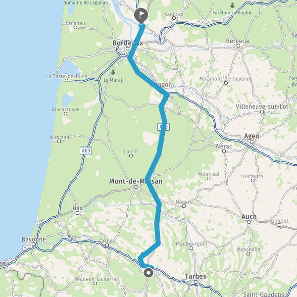 Prendre à droite et rejoindre A65. Continuer sur 150 kilomètres