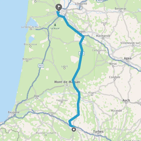 Prendre à droite et rejoindre A65. Continuer sur 150 kilomètres