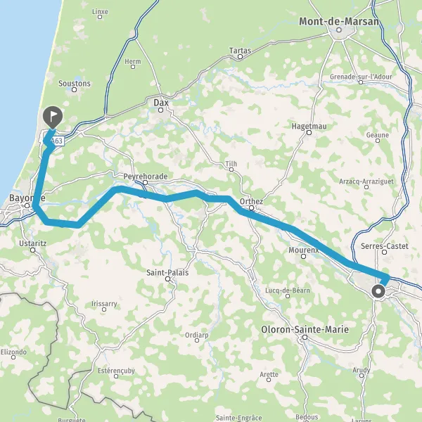 Continuer et rejoindre A64 E80. Continuer sur 69 kilomètres