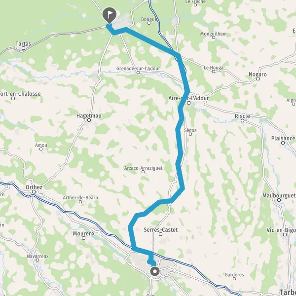 Au rond-point, prendre la 3ème sortie sur D40 (Route d'Arzacq) et continuer sur 14 kilomètres
