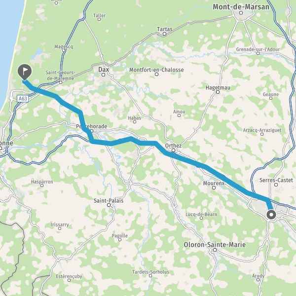 Continuer et rejoindre A64 E80. Continuer sur 69 kilomètres