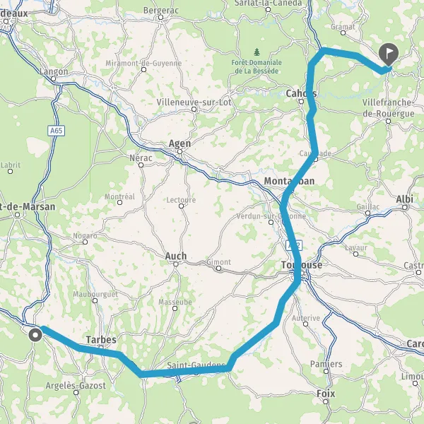 Prendre à droite et rejoindre A62. Continuer sur 33 kilomètres