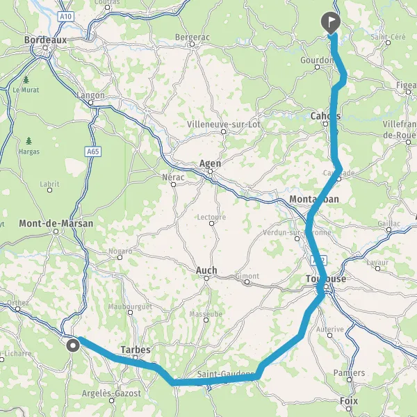 Prendre à droite et rejoindre A62. Continuer sur 33 kilomètres