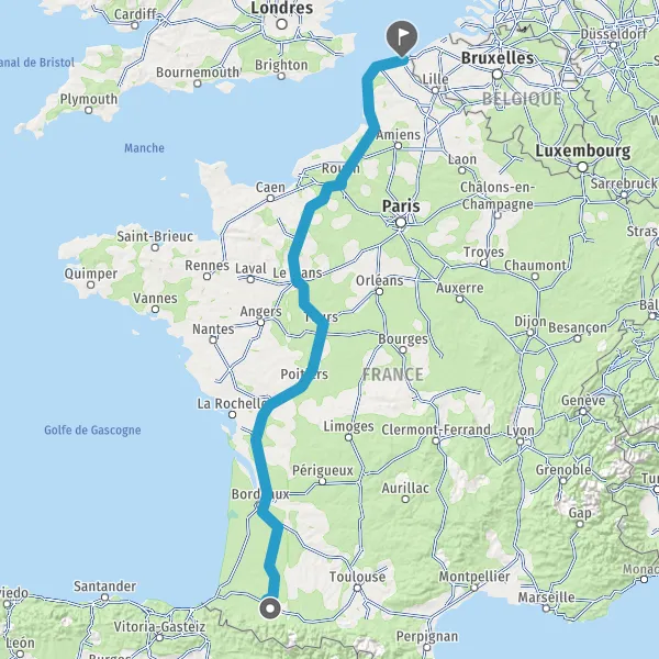 Continuer E5 (L'Aquitaine) sur 328 kilomètres