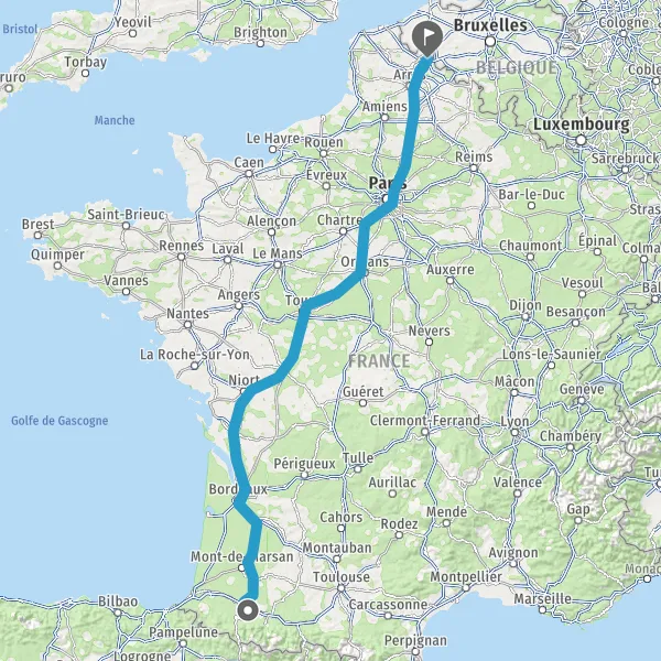 Prendre à droite et rejoindre A65. Continuer sur 150 kilomètres
