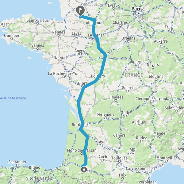 Prendre à droite et rejoindre A65. Continuer sur 150 kilomètres