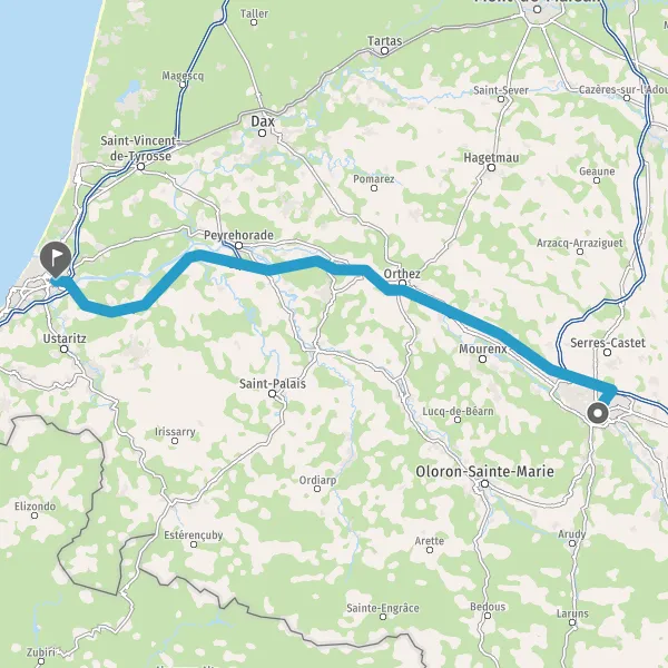 Continuer et rejoindre A64 E80. Continuer sur 102 kilomètres