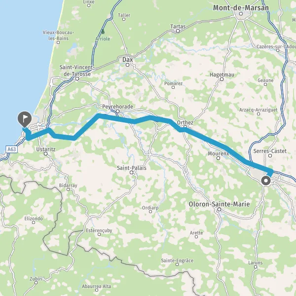 Tourner légèrement à droite sur A63 E5 E70 E80 et continuer sur 8,6 kilomètres