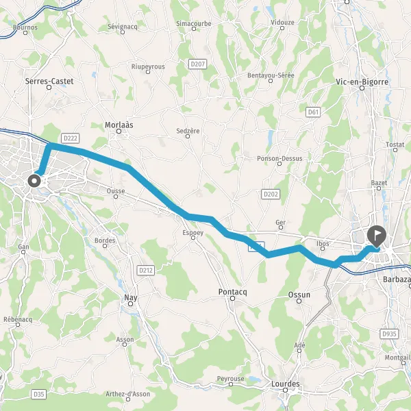 Prendre à droite et rejoindre A64 E80. Continuer sur 34 kilomètres
