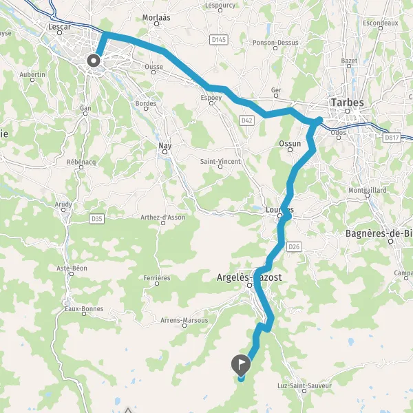 Au rond-point, prendre la 3ème sortie sur D817 (Route de Tarbes) et continuer sur 5,9 kilomètres