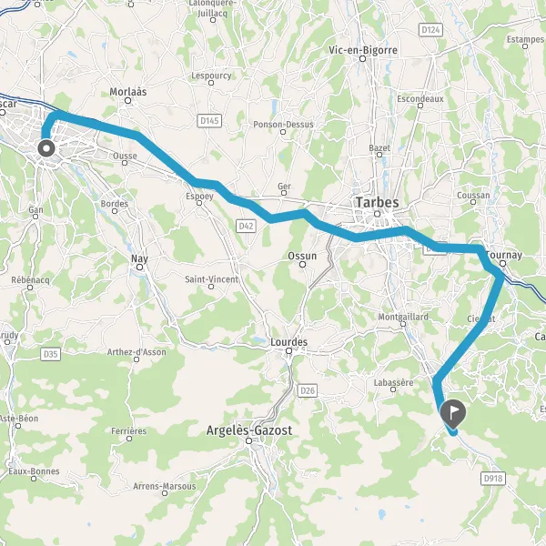 Au rond-point, prendre la 3ème sortie sur D817 (Route de Tarbes) et continuer sur 5,9 kilomètres
