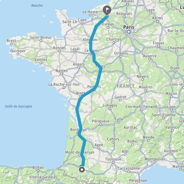 Prendre à droite et rejoindre A65. Continuer sur 150 kilomètres