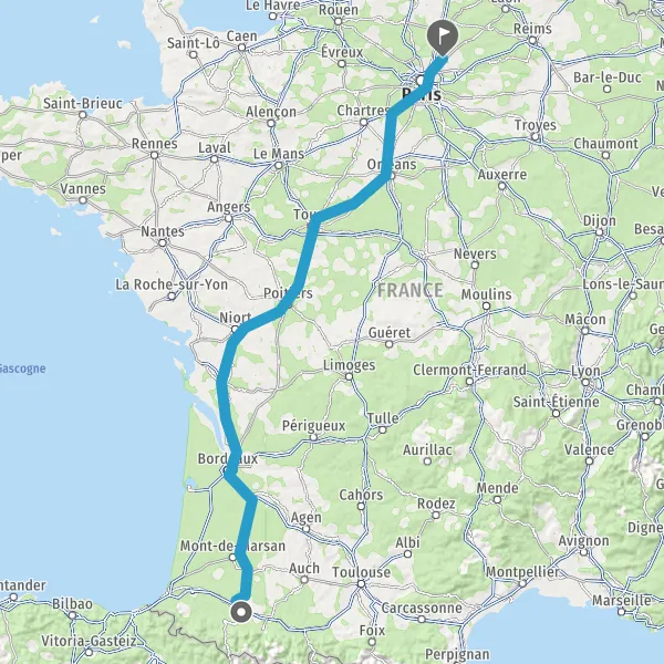 Prendre à droite et rejoindre A65. Continuer sur 150 kilomètres