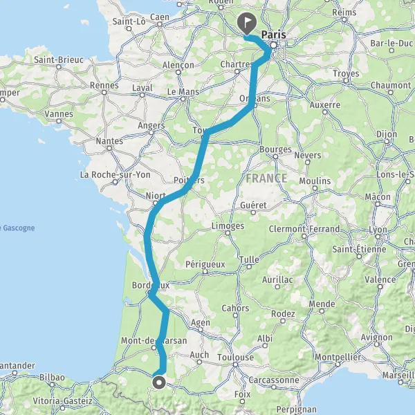 Prendre à droite et rejoindre A65. Continuer sur 150 kilomètres