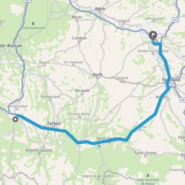 Prendre à droite et rejoindre A62. Continuer sur 33 kilomètres
