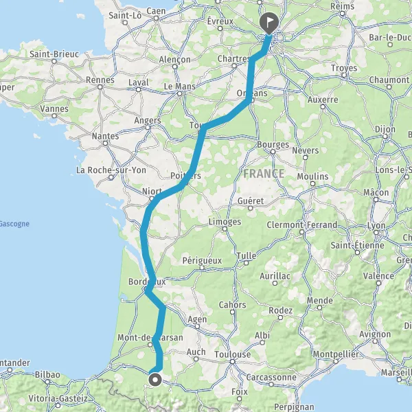 Prendre à droite et rejoindre A65. Continuer sur 150 kilomètres