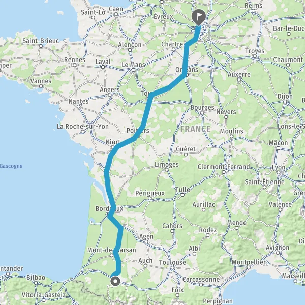 Prendre à droite et rejoindre A65. Continuer sur 150 kilomètres