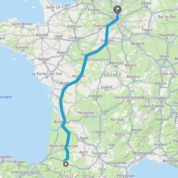 Prendre à droite et rejoindre A65. Continuer sur 150 kilomètres