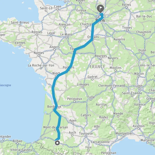 Prendre à droite et rejoindre A65. Continuer sur 150 kilomètres