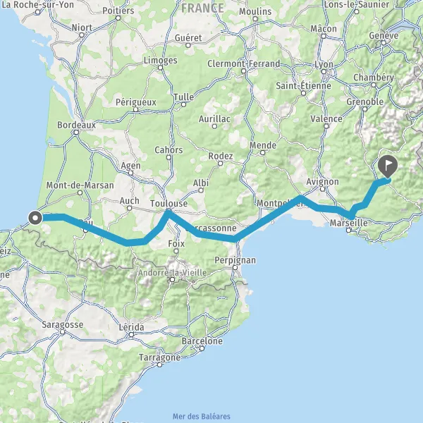 Prendre à droite et rejoindre A64. Continuer sur 287 kilomètres