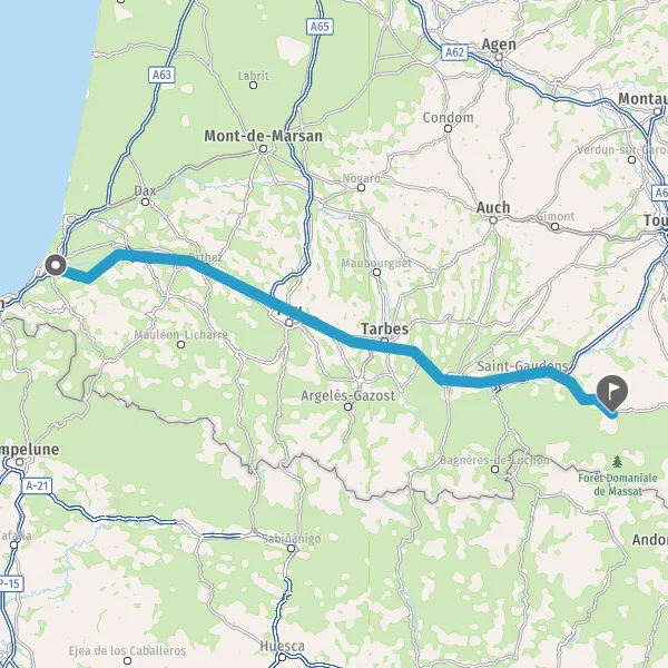 Prendre à droite et rejoindre A64. Continuer sur 221 kilomètres