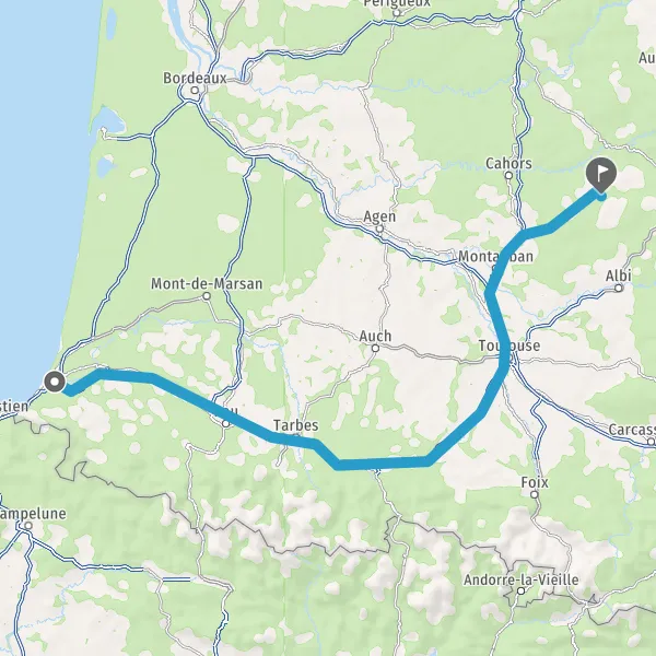 Prendre à droite et rejoindre A64. Continuer sur 287 kilomètres
