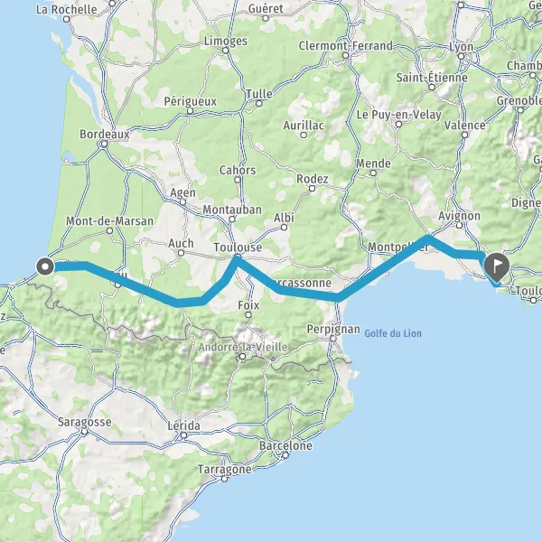 Avec le mode voiture, vous pouvez configurer vos options (type de véhicule, autoroute ou non, péage ou non, distance la plus courte), tout en ayant accès aux infos de circulation grâce à notre service d'info-trafic en temps réel. Ainsi faites des économies sur le coût ou la durée de votre voyage, en trouvant le trajet Bayonne Marseille adapté à vos besoins.