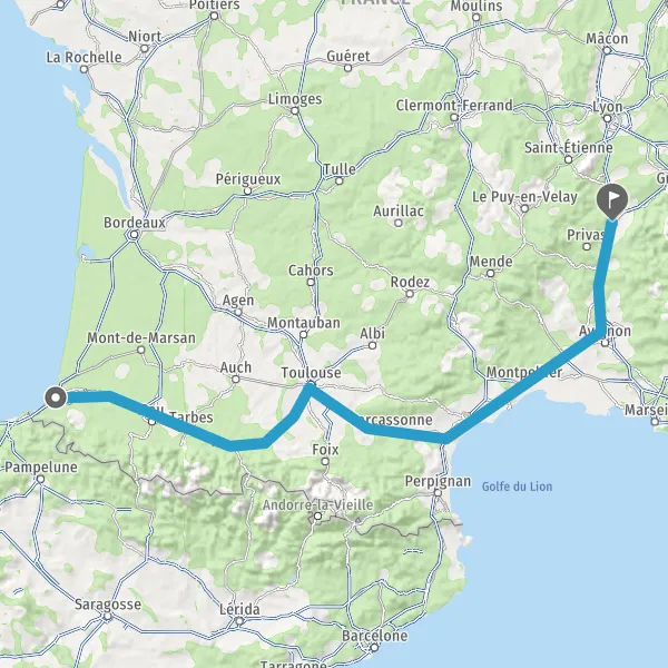 Prendre à droite et rejoindre A64. Continuer sur 287 kilomètres