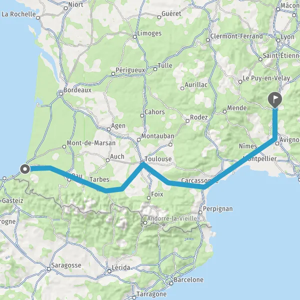 Prendre à droite et rejoindre A64. Continuer sur 287 kilomètres