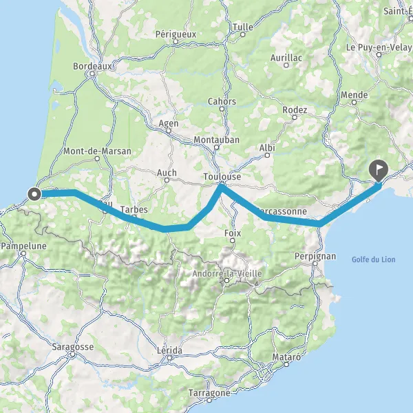 Prendre à droite et rejoindre A64. Continuer sur 287 kilomètres