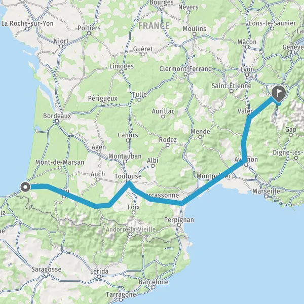 Prendre à droite et rejoindre A64. Continuer sur 287 kilomètres