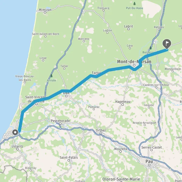 Prendre à droite et rejoindre D824 (Route de Bayonne). Continuer sur 39 kilomètres