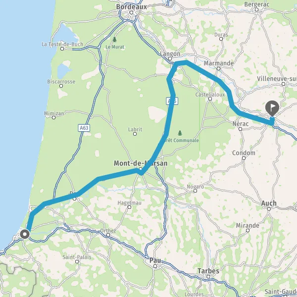Prendre à droite et rejoindre D824 (Route de Bayonne). Continuer sur 39 kilomètres