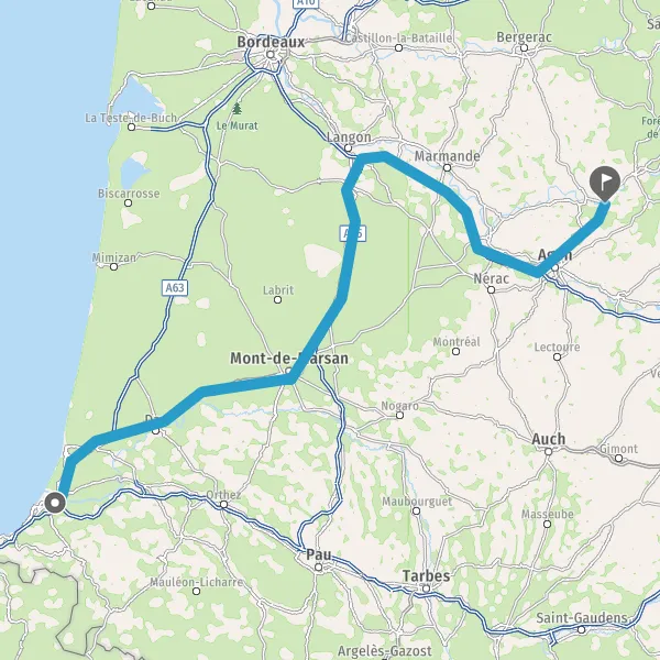 Prendre à droite et rejoindre D824 (Route de Bayonne). Continuer sur 39 kilomètres