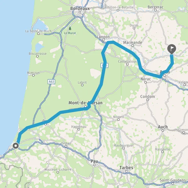 Prendre à droite et rejoindre D824 (Route de Bayonne). Continuer sur 39 kilomètres