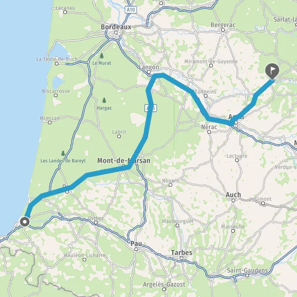 Prendre à droite et rejoindre D824 (Route de Bayonne). Continuer sur 39 kilomètres