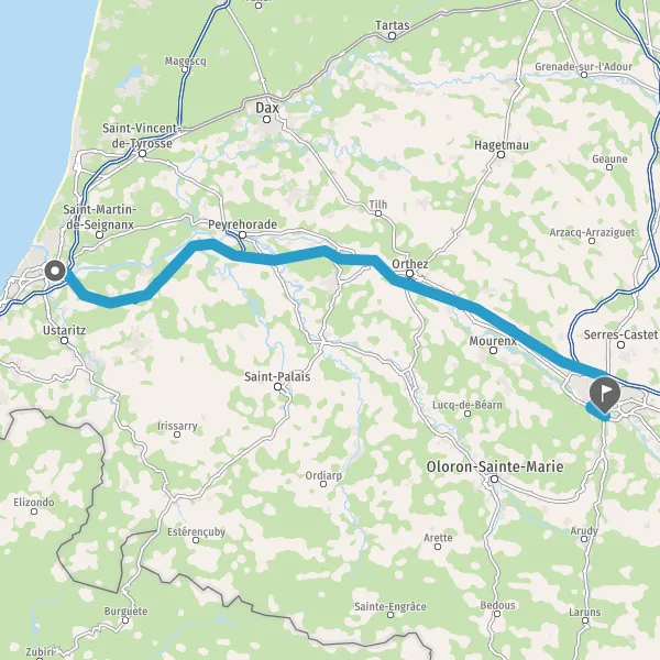 Prendre à droite et rejoindre A64. Continuer sur 97 kilomètres