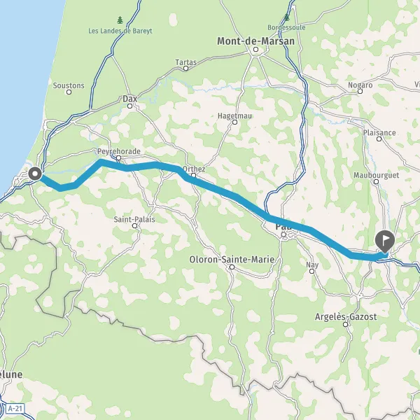 | Distance à vol d’oiseau | 129 km |