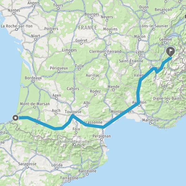 Prendre à droite et rejoindre A64. Continuer sur 287 kilomètres