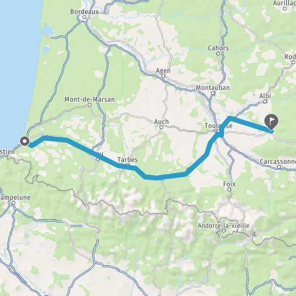 Prendre à droite et rejoindre A64. Continuer sur 287 kilomètres