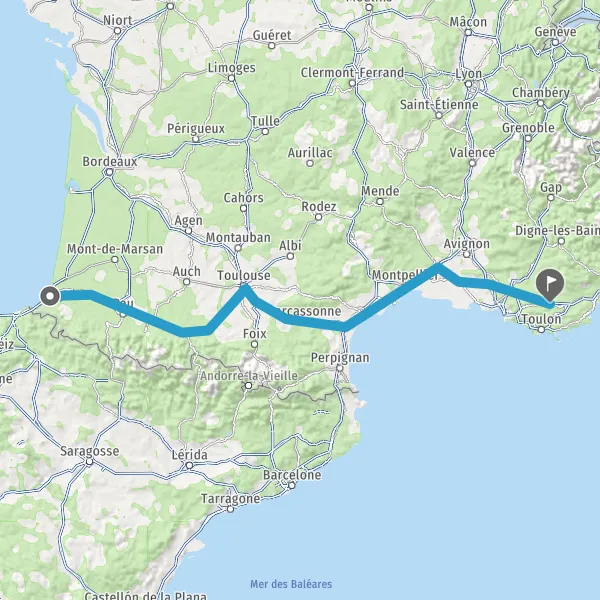 Prendre à droite et rejoindre A64. Continuer sur 287 kilomètres