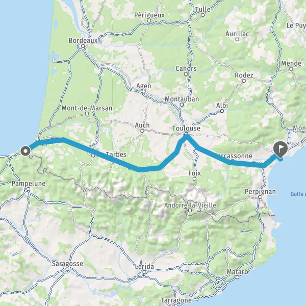 Prendre à droite et rejoindre A64 E80. Continuer sur 286 kilomètres