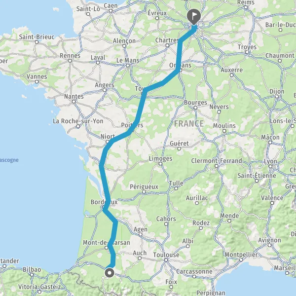 Prendre à droite et rejoindre A65. Continuer sur 150 kilomètres