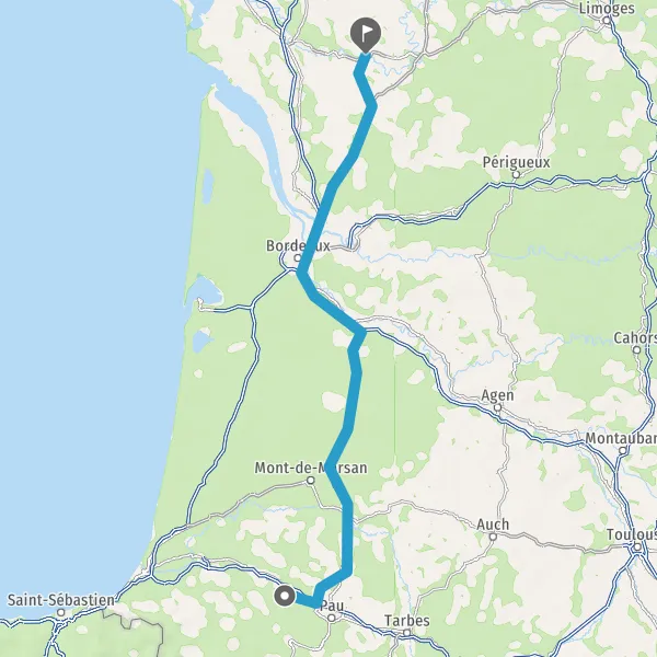 Prendre à droite et rejoindre A65 E7. Continuer sur 150 kilomètres